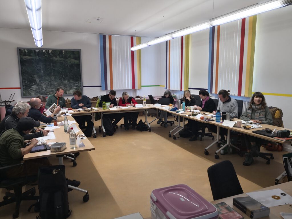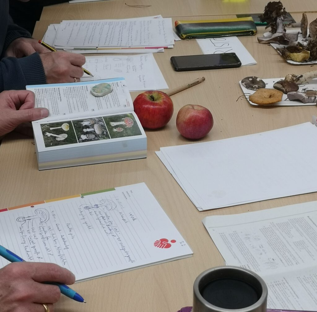 Aufgenommene Frischpilze werden für Bestimmungsübungen im Raum mitgenommen.